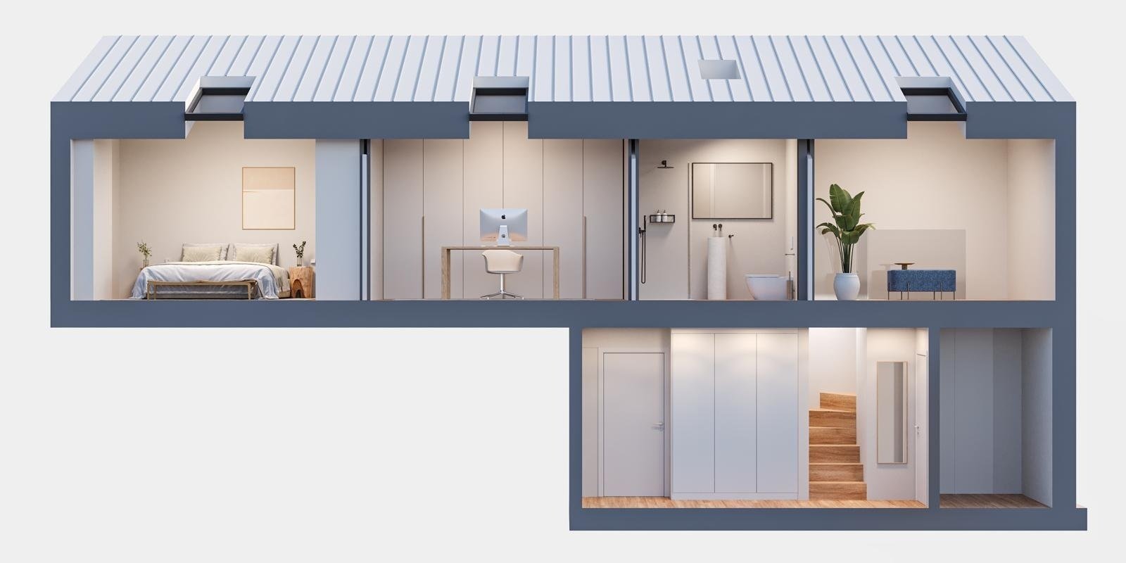 - Telhado: excelente isolamento térmico/acústico, janelas com caixilharia em alumínio e vidros duplos espelhados
